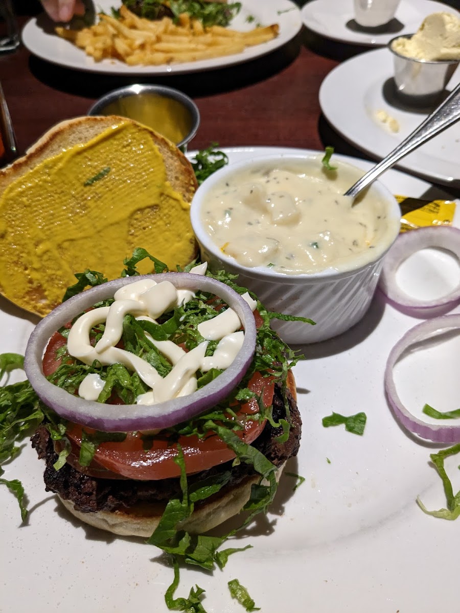 When we arrived on Friday evening it looked like it would be a long wait. We waited less than 10 minutes, and we were a party of 4. The place is very big, and a lot of parking in the back. It’s clean, and the service is friendly and efficient. We had the hamburger and the Scrod, and the strawberry chicken salad. Everything was excellent! By drinking water our bill was $71.