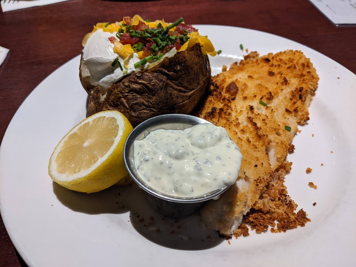I had the salmon, steamed broccoli, and baked potato. The salmon was cooked right with no fat and tasted great! Highly recommend. The baked potato with cheese was also excellent. The steamed broccoli was cooked correctly. Aubrey’s offers exceptional value. The service was terrific, and the atmosphere was also very nice! I will definitely go back 98